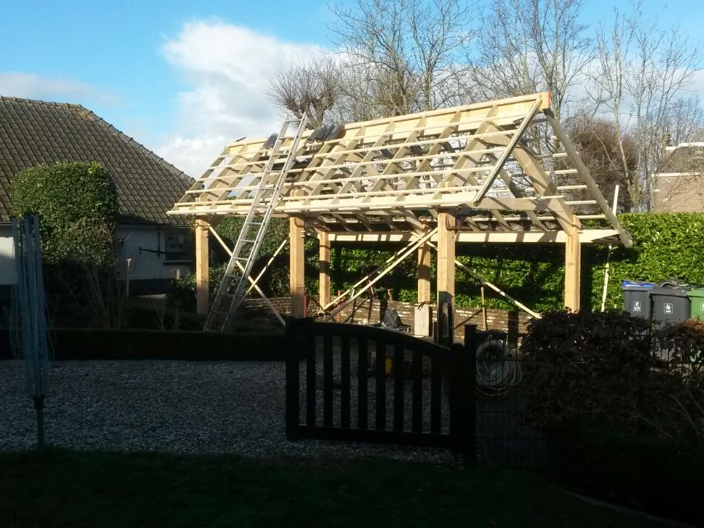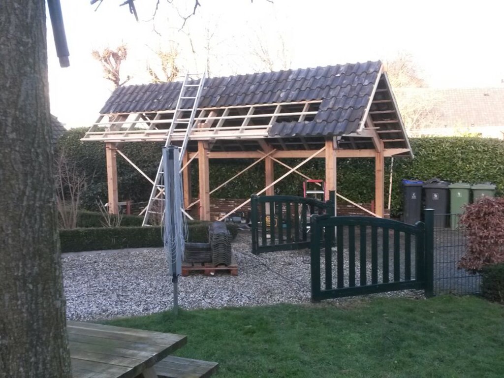 Deze tuinkamer is een combinatie van een houtopslag en een heerlijk plekje om het gehele jaar van het buitenleven te kunnen genieten.
