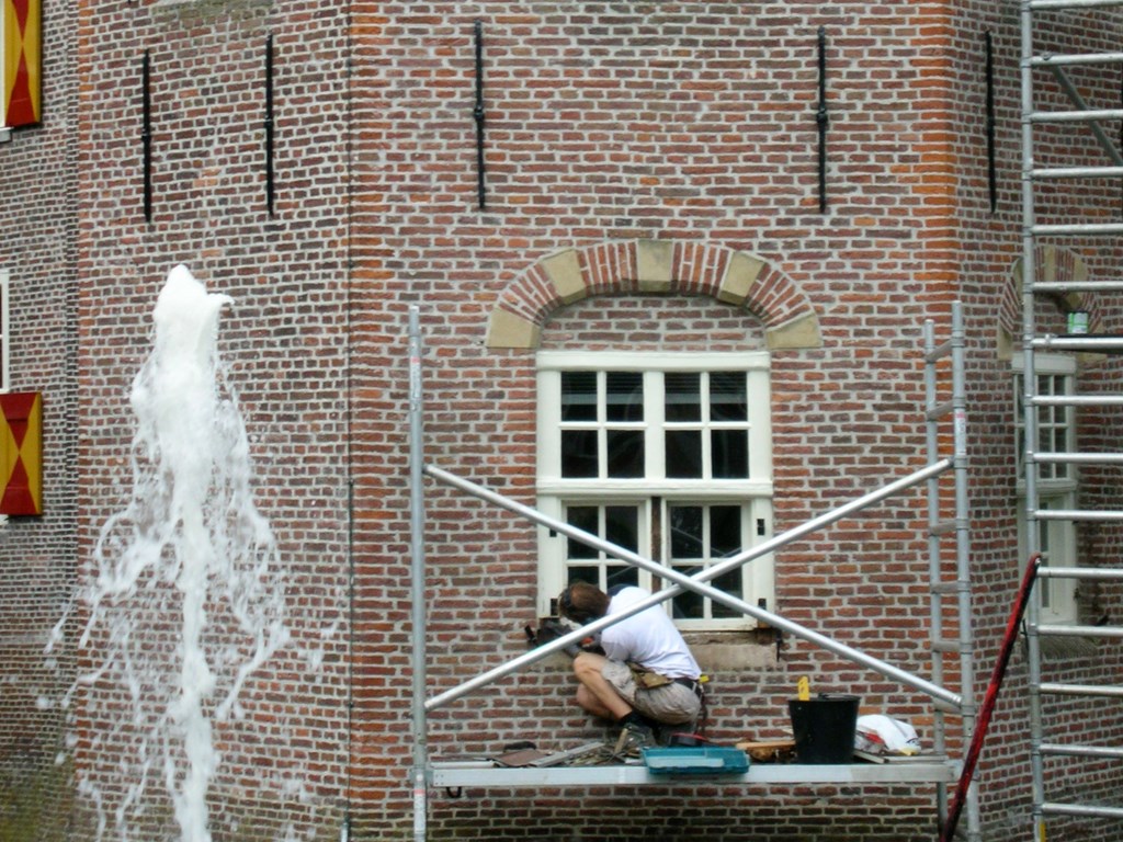 Het Kasteel is gebouwd in een vierkant. Op iedere hoek bevindt zich een zeskantige hoektoren. Het kasteel wordt omgeven door een slotgracht. In en om Kasteel Nederhorst voert Timmerbedrijjf Leurs diverse restauratie werkzaamheden uit